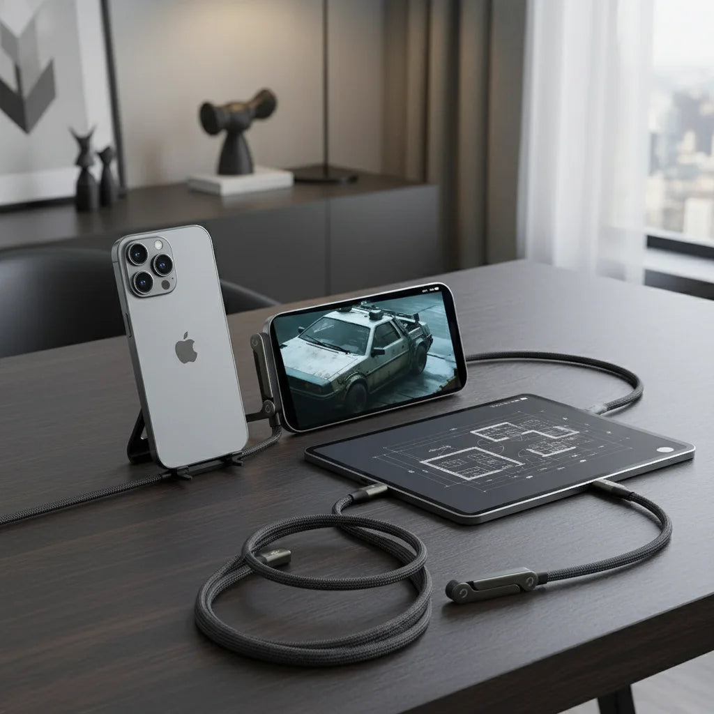 Charge fast, watch hands-free. Ditch the clutter and conquer your day like a pro with this 2-in-1 power.